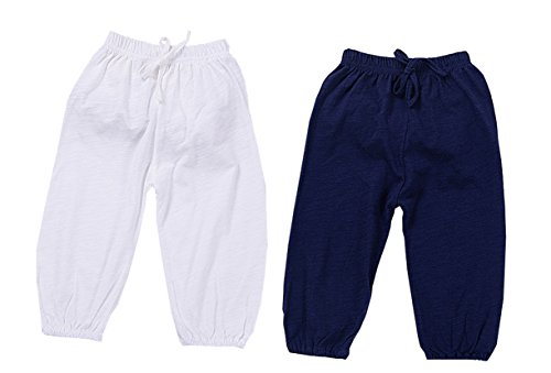 REILI 子供 ロングパンツ ニッカボッカ 2枚セット 男の子 女の子 男女兼用 綿 ベビー 夏秋 無地 ウェストゴム シンプル ズボン 通気 (120, ホワイト+ネービー)
