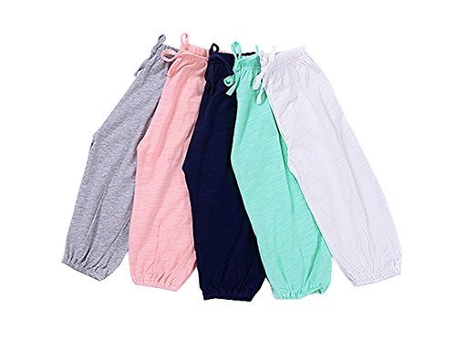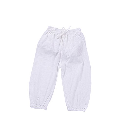 REILI 子供 ロングパンツ ニッカボッカ 2枚セット 男の子 女の子 男女兼用 綿 ベビー 夏秋 無地 ウェストゴム シンプル ズボン 通気 (110, ホワイト+ピンク)