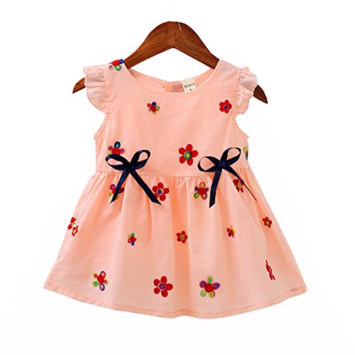 REILI ワンピース 子供 女の子 ノースリーブ 花柄 蝶結びリボン 発表会 結婚式 パーティ ドレス 夏