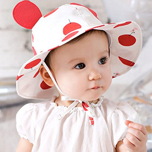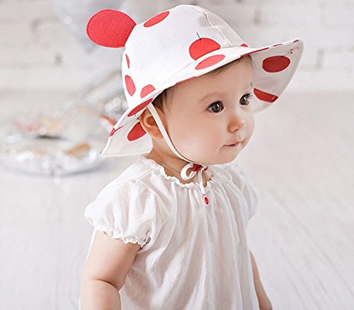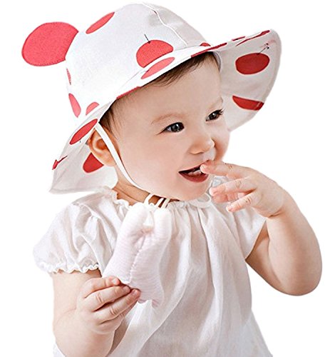 【ルリジューズ】 Religeuses ベビー ハット 赤ちゃん 帽子 日焼け 防止 UV カット 乳児用 水玉 つば 付き (赤)