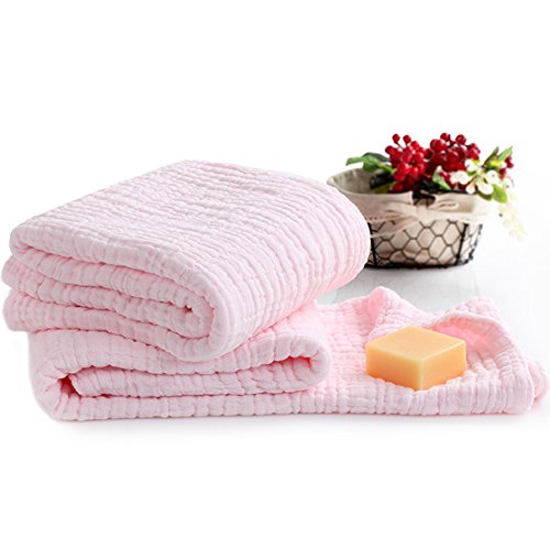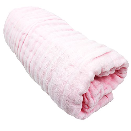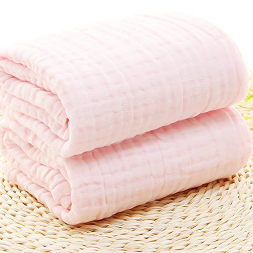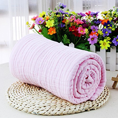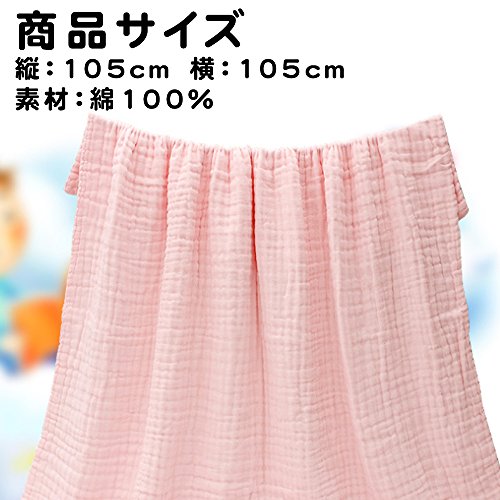REUSE MARKET ベビーケット 6重ガーゼ素材 タオル 綿100% 肌触り良好 通気性 速乾性 吸水性抜群 おくるみ バスタオル ブランケット 無地 105cm×105cm (ピンク)