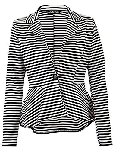 レディーススリムフィットストライプジャケット女性用長袖1つボタンペプラムブレザーコート