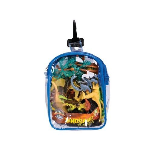 Adventure Planet Dinosaur 12 piece playset includes: triceratops, stegosaurus, apatosaurus, tyrannosaurus rex, allosaurus, Pterosaurs (pterodactyl), parasaurolophus, dimetrodon, prosauropod, scutellosaurus, pachycephalosaurus and a play rock. Figures measure from approximately 2.5 to 3 inches long and 1 to 2.5 inches tall. Set comes in a transparent vinyl bag with zipper and clip so you can easily bring your dinosaurs with you!