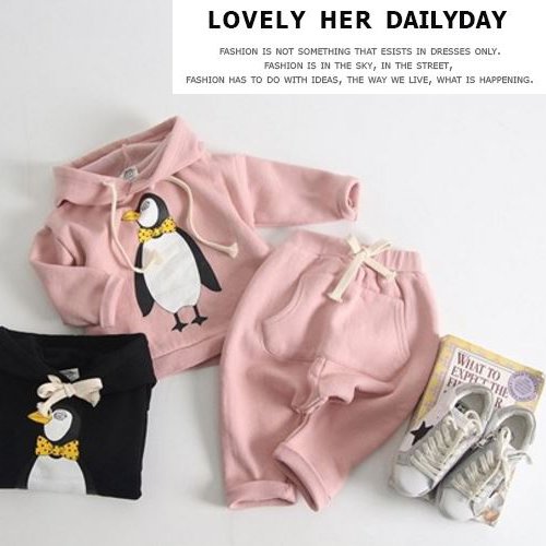 【RIRORA】 ペンギンも実は寒いよ上下セット [ピンク] 女の子・一番かわいい服・大人気アイテム・誰よりもおしゃれに・ベビーファッション (13 (125-135cm))