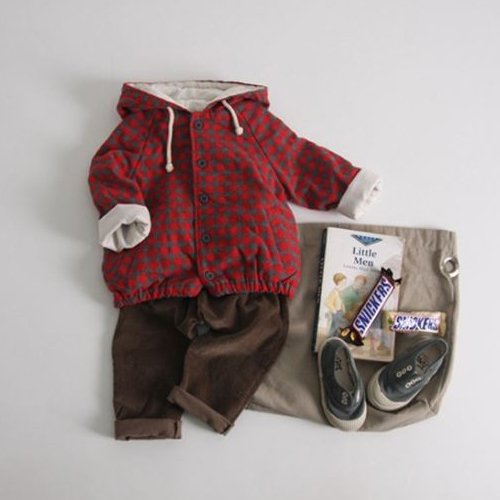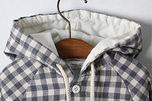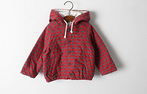 【RIRORA】チェックフードジャケット [グレー/レッド] 女の子・男の子・一番かわいい服・大人気アイテム・誰よりもおしゃれに・ベビーファッション (XL, レッド)