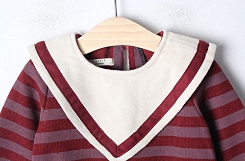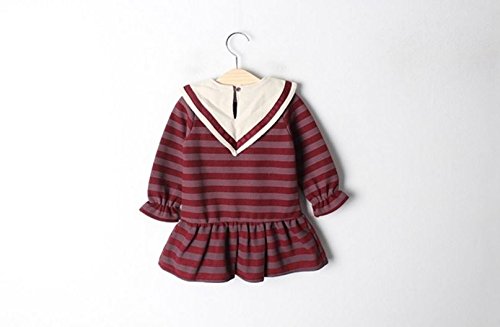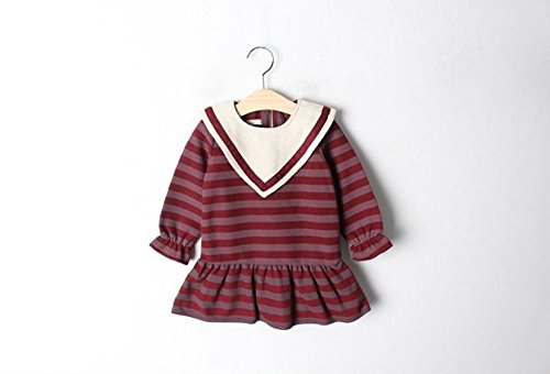 【RIRORA】 セーラーカラー付きボーダーワンピース [ブロンズ] 女の子・一番かわいい服・大人気アイテム・誰よりもおしゃれに・ベビーファッション (M)