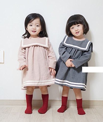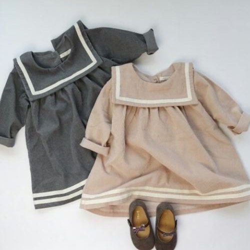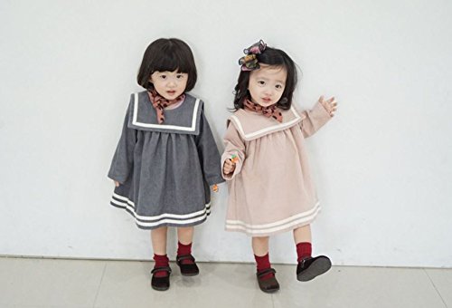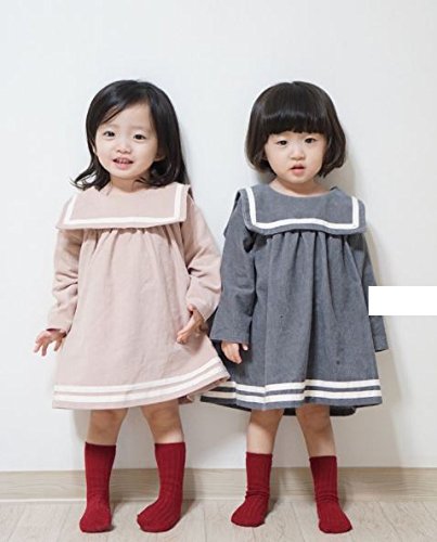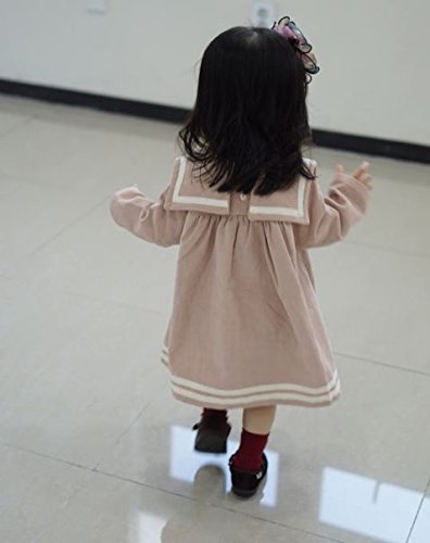 【RIRORA】コーデュロイセーラーカラーワンピース[グレー/ピンク]女の子・一番かわいい服・秋/冬新作・誰よりもおしゃれに・ベビーファッション (S, ピンク)