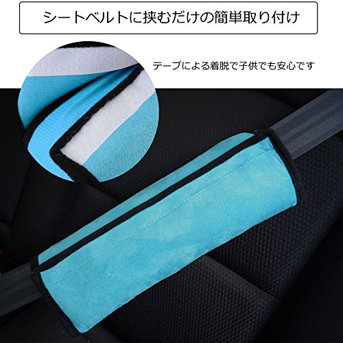 RISES シートベルトクッション 取付簡単 お子様も快適 車載ネックピロー (ブルー)