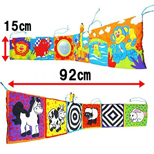 - カラフルでわかりやすい!はっきりとした絵柄で、ライオンのたてがみやキリンの顔等触るとカサカサと、またうさぎを押しても音がなり赤ちゃんの興味・関心をそそる仕掛けになっております。鏡に顔を映してみるのもよいでしょう。