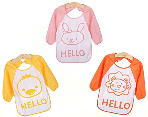 - 水や汚れに強いお食事用の長袖エプロン3枚セットです。袖が付いているのでお洋服を汚すこともなく、汚れや食べこぼしなどもサッと拭き取ることができます。