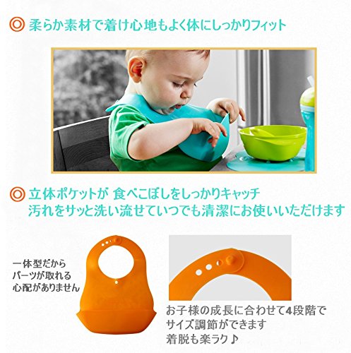 - 立体的で大きなキャッチ用ポケットで、衣類の汚れ・床に落ちる食べこぼしも減ります。