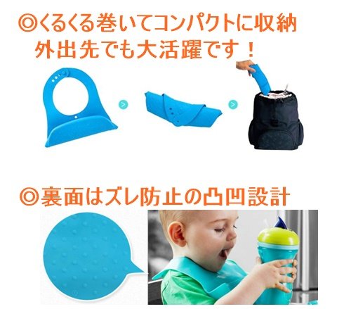 ◆立体的で大きなキャッチ用ポケットで、衣類の汚れ・床に落ちる食べこぼしも減ります。