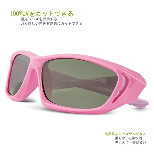 RIVBOS(リバッズ)RBK025 キッズ 子供用サングラス 偏光レンズ ゴムフレーム UVカット (2038-ピンク)