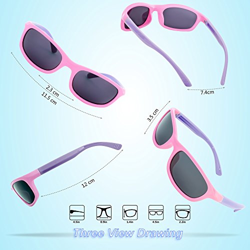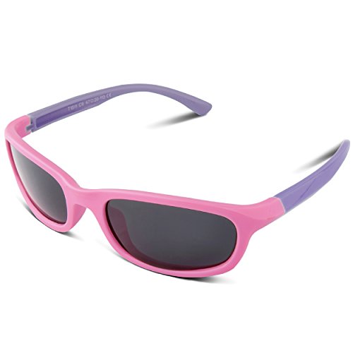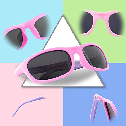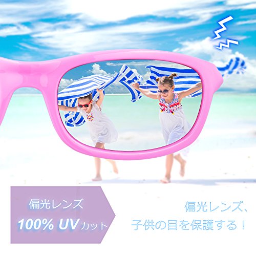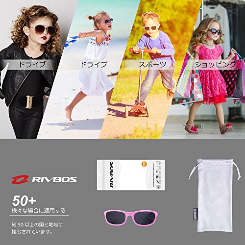 RIVBOS(リバッズ)RBK1511 キッズ 子供用サングラス 偏光レンズ ゴムフレーム UVカット ボーイズサングラス ガールズサングラス (ピンク)