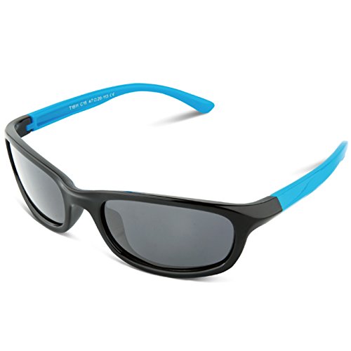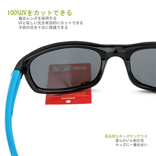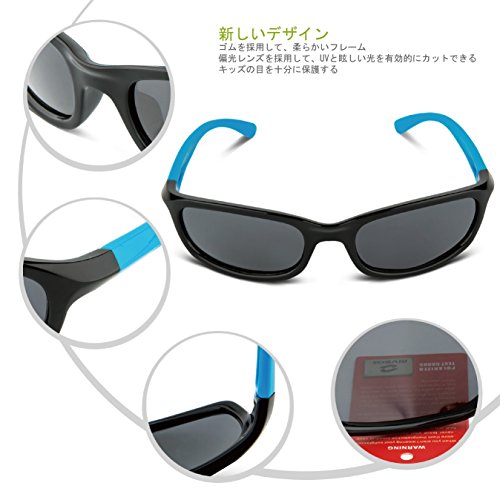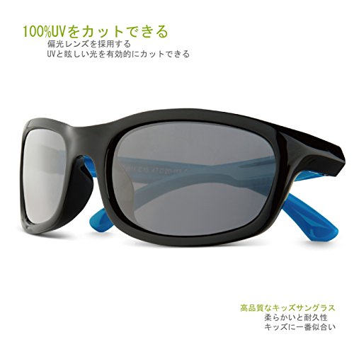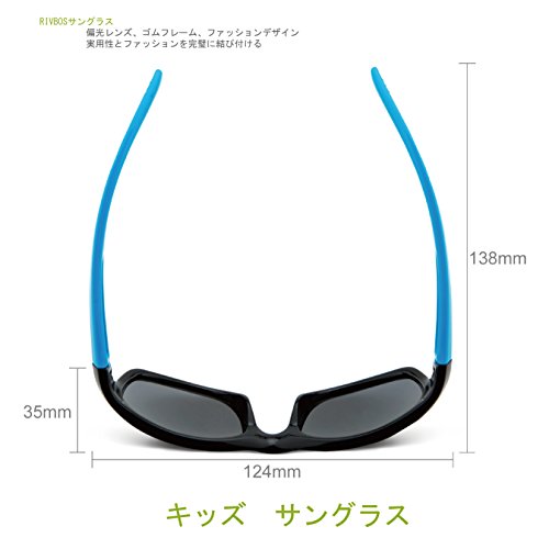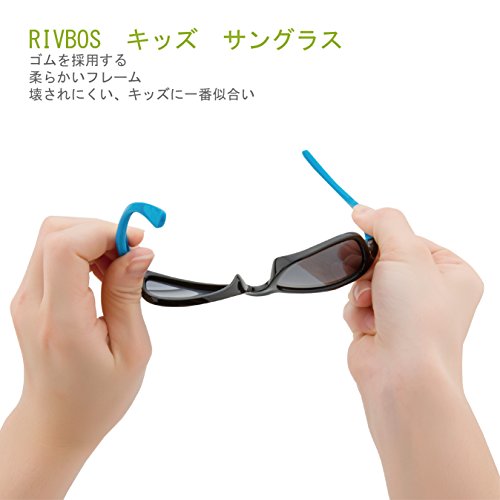 RIVBOS(リバッズ)RBK1511 キッズ 子供用サングラス 偏光レンズ ゴムフレーム UVカット ボーイズサングラス ガールズサングラス (ブラック&ブルー)