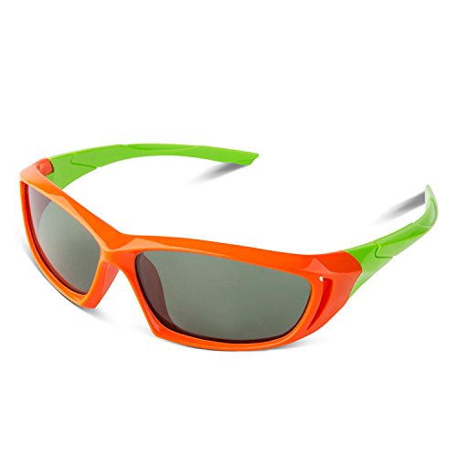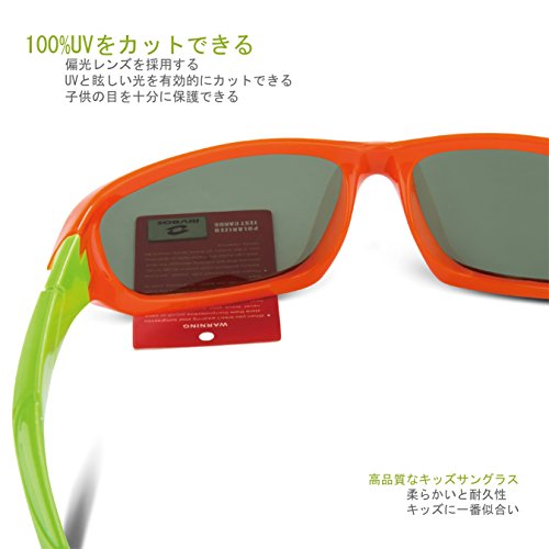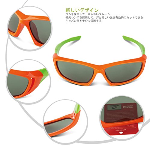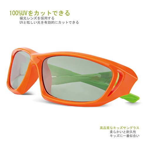 RIVBOS(リバッズ)RBK025 キッズ 子供用サングラス 偏光レンズ ゴムフレーム UVカット (2038-オレンジ)