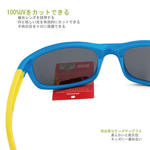 RIVBOS(リバッズ)RBK1511 キッズ 子供用サングラス 偏光レンズ ゴムフレーム UVカット ボーイズサングラス ガールズサングラス (スカイ ブルー)