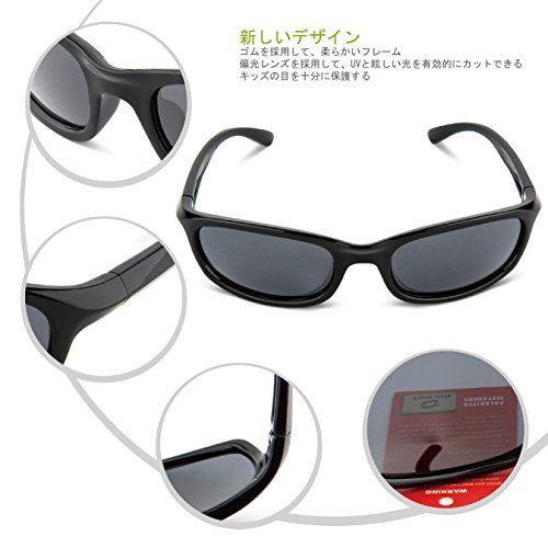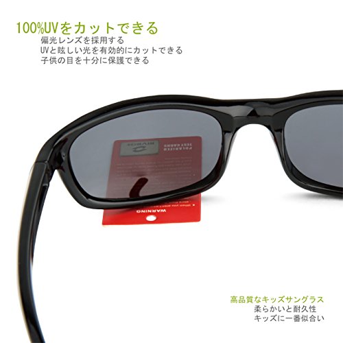 RIVBOS(リバッズ)RBK1511 キッズ 子供用サングラス 偏光レンズ ゴムフレーム UVカット ボーイズサングラス ガールズサングラス (ブラック)