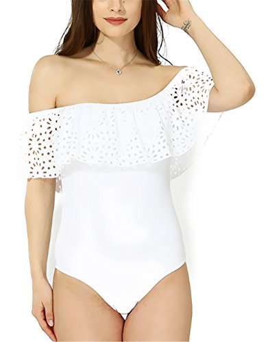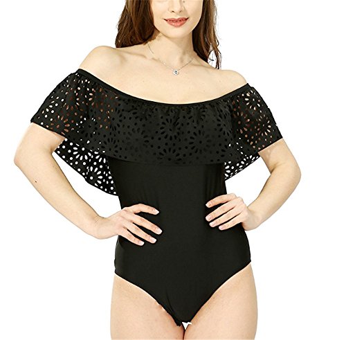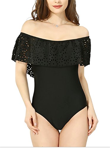 レディース水着 連体式 ビキニ ワンピース セパレーツ ラッシュガード フ 着痩せ 保守的 夏休み 泳ぐ カップ付 フリル レース スクール水着 オフショルダー (s, ブラック)