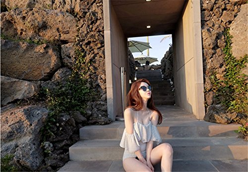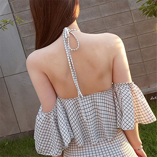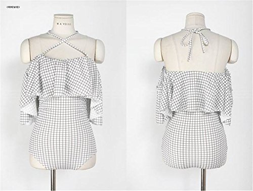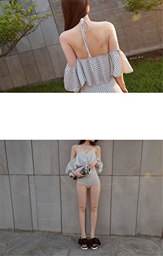 レディース水着 連体式 ビキニ ワンピース セパレーツ ラッシュガード フィットネス スクール水着 着痩せ カップ付ワイヤー入り 保守的 夏休み 泳ぐ ホルターネック バックレス 美胸 グリッド (l)