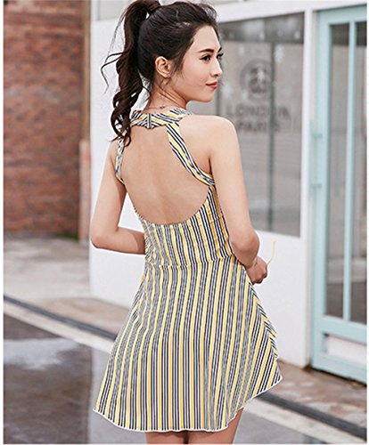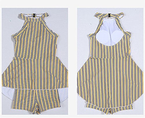 レディース水着 連体式 ワンピース セパレーツ ラッシュガード フィットネス スクール水着 着痩せ カップ付 保守的 夏休み 泳ぐ ホルターネック ストライプ バックレス (xl)