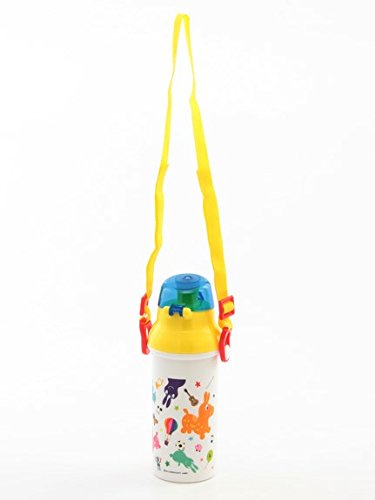ロディや音符、おもちゃをたくさん散りばめたプリントデザインがCute♪ボタンを押すだけのワンタッチで、手軽に開閉できる直飲みボトルです。暑さの厳しい時期、脱水&熱中症対策アイテムとしても重宝できる一品。肩掛けできるロングストラップ付きなのも好ポイントです。