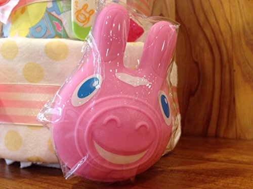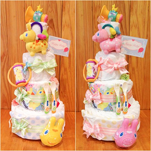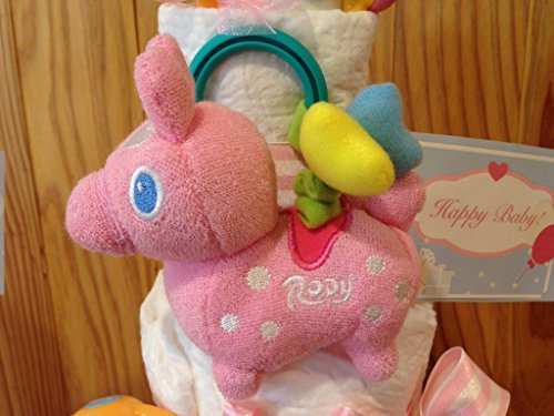 【もらって嬉しい!】豪華なロディ4段おむつケーキ!たっぷり6点おもちゃと優しいデザインのお洋服付き☆ (ピンク)