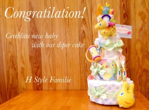 インパクト満点!4段おむつケーキにロディグッズが6点、 お洋服1点も付いています! その品質と内容に自信アリ!是非比べてみてください! エイチスタイルファミリエのおむつケーキはあなたの気持ちを 形にします。
