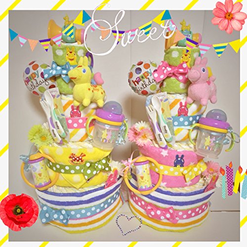 豪華4段☆Rodyロディデラックスおむつケーキ 出産祝い (きいろ)