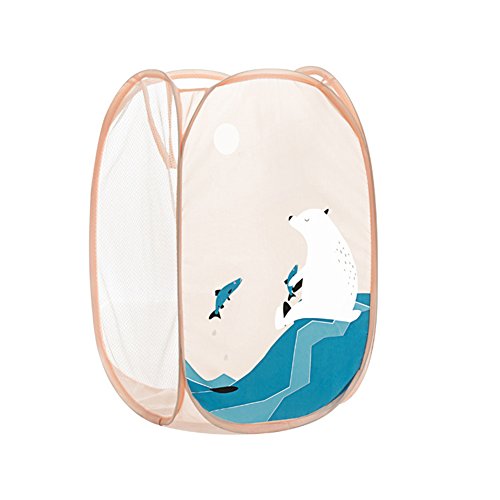 ROKE ランドリーバスケット 洗濯かご ランドリー収納 ランドリーボックス 脱衣かご 折りたたみ メッシュバスケット 通気性強い 大容量 (ホッキョクグマ)