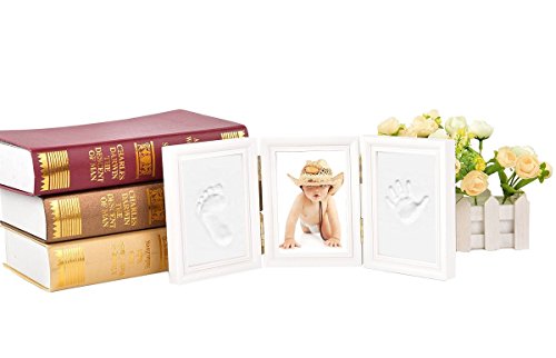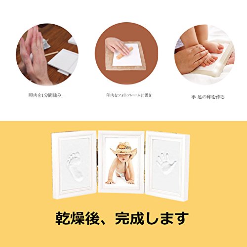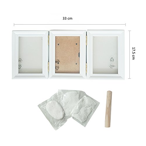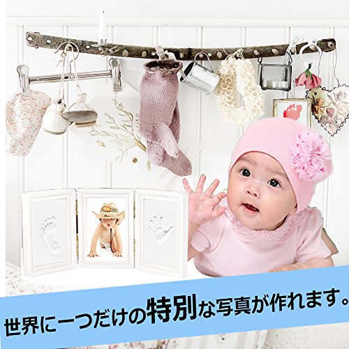 - ホワイト木製のフォトフレームは、赤ちゃんの手形、足跡、写真と一緒に飾れる、見開き三面タイプ木製のフォトフレームです、それは赤ちゃんの手形と足形をキャプチャするのに適切な方法です。お子様の成長を形にして記録できる。世界に一つだけの特別な写真立てが作れます。
