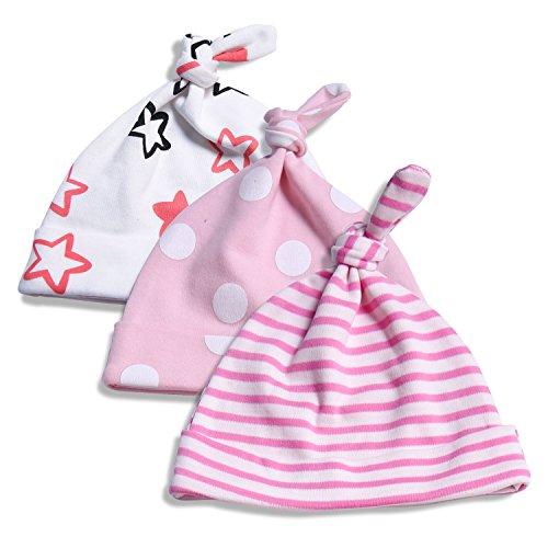 Romperinbox(ロンパースインパック)新生児用 ベビー帽子 女の子 キッズ帽子 秋冬 防寒 綿100% 3枚セット (6~9ヶ月, ピンク*3枚)