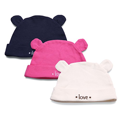 Romperinbox(ロンパースインパック)新生児用 クマさん帽子 キッズ帽子 秋冬 防寒 綿100% 3枚セット (6~9ヶ月, クマさん)