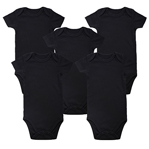 ロンパーボックス Romperinbox ベビー ロンパース 半袖 長袖 ベビーボディスーツ 女の子 男の子 0~24ヶ月設 無地タイプ (12-18ヶ, 黒半袖5枚)