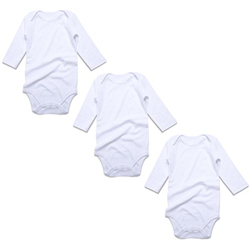 カバーオール 女の子 男の子 長袖 白 ロンパース3枚セット 赤ちゃん用(0-3ヶ月, 白長袖3枚)
