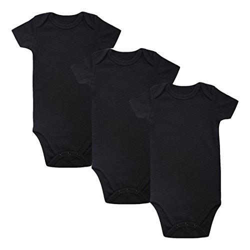 ロンパーボックス Romperinbox ベビー ロンパース 半袖 長袖 ベビーボディスーツ 女の子 男の子 0~24ヶ月設 無地タイプ (3-6ヶ, 黒半袖3枚)