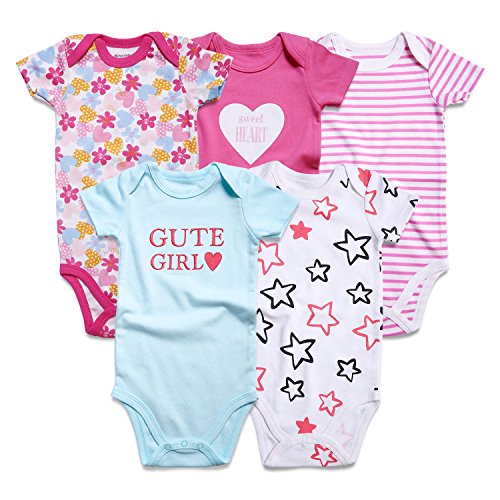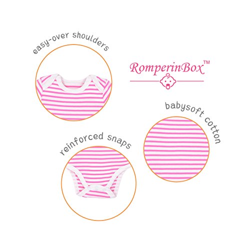 Romperinbox ( ロンパースインパック) ベビー ロンパース 女の子 綿100% 半袖ボディースーツ5枚セット (9-12ヶ月, 桜色/青色)