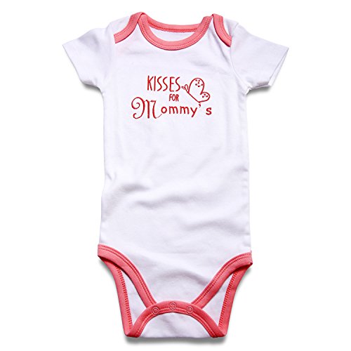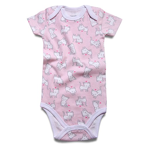 Romperinbox ( ロンパースインパック) ベビー ロンパース 女の子 綿100% 半袖ボディースーツ5枚セット (0-3ヶ月, べに色/白い色)