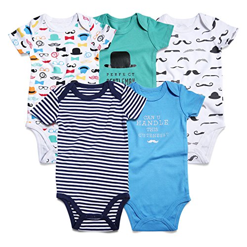 Romperinbox ( ロンパースインパック) ベビー ロンパース 男の子 綿100% 半袖ボディースーツ5枚セット (0-3ヶ月, ポタ・ブルー・紳士)