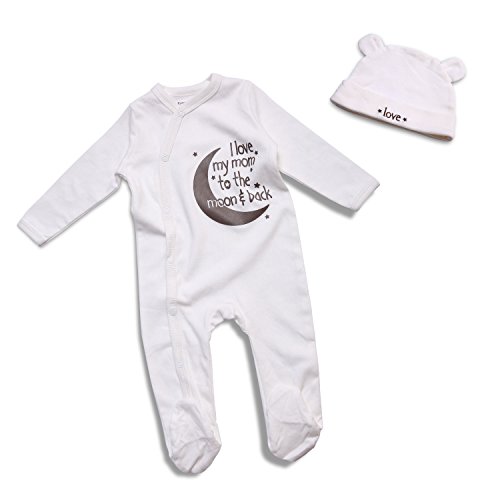 ロンパース Romperinbox 新生児服 カバーオールロンパース 足つき 長袖 前開き 秋冬用 ロンパース+帽子 2点セット (9~12ヶ月)