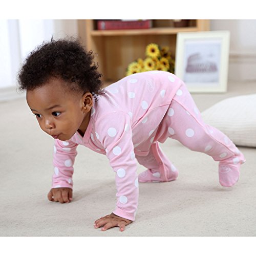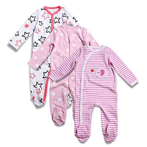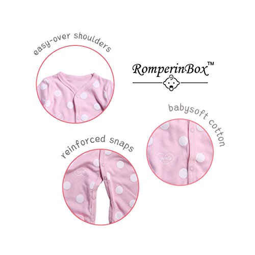 Romperinboxロンパース 新生児 可愛い ベビー服 カバーオール 足つき 赤ちゃん 肌着 長袖 前開き 女の子 秋冬 出産祝い コットン100% 3枚セットピンク 67-72cm(6~9ヶ月, ピンク)