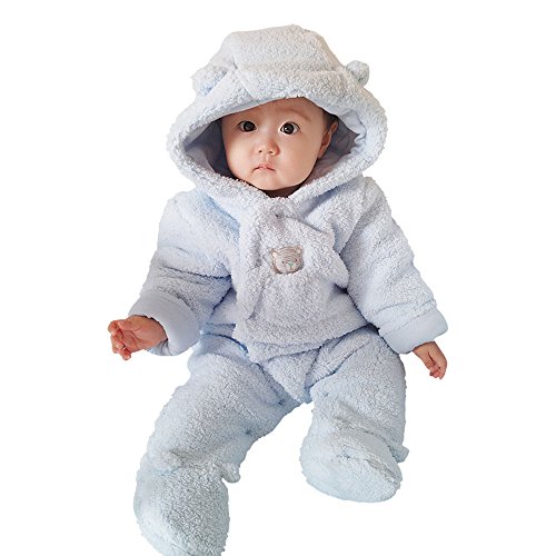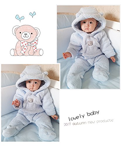 Romperinbox(ロンパースインパック)ベビー キッズ用 くまさんカバーオール フード付き 着ぐるみ 子ども服 もこもこ 防寒着 (3~6ヶ月, ブルー)