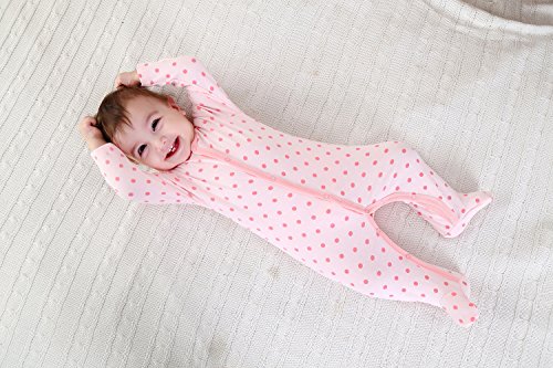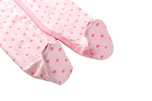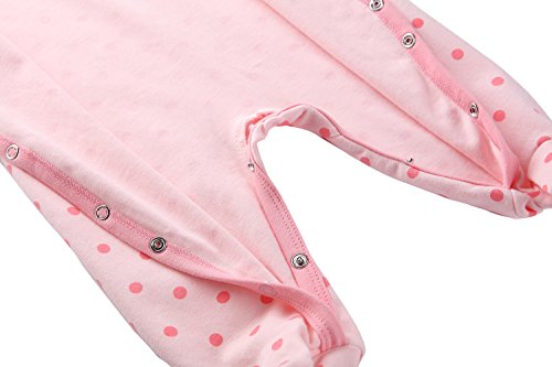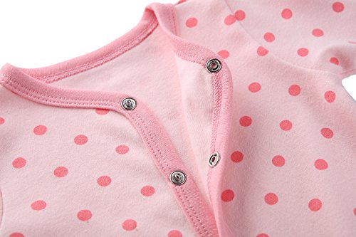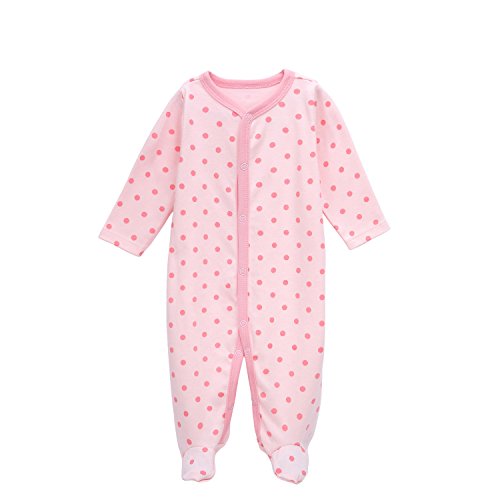 Mother Nest カバーオール 足つき 長袖 女の子 男の子 赤ちゃん ロンパース 前開き 新生児 ベビー 秋冬 コットン100% (0-3月(55-61cm), 水玉プリント*ピンク)