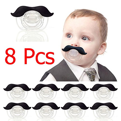 RONGTONGDA 面白い ノベルティ 赤ちゃん用 ベビー用品 おしゃぶり ニップル 口ひげ付 ハンドルバー 可愛い 幼児 (ブラック(8点セット))