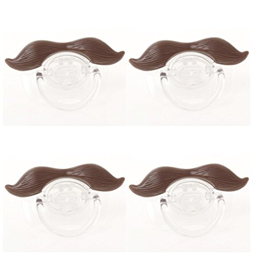 RONGTONGDA 面白い ノベルティ 赤ちゃん用 ベビー用品 おしゃぶり ニップル 口ひげ付 ハンドルバー 可愛い 幼児 (ブラウン(4点セット))