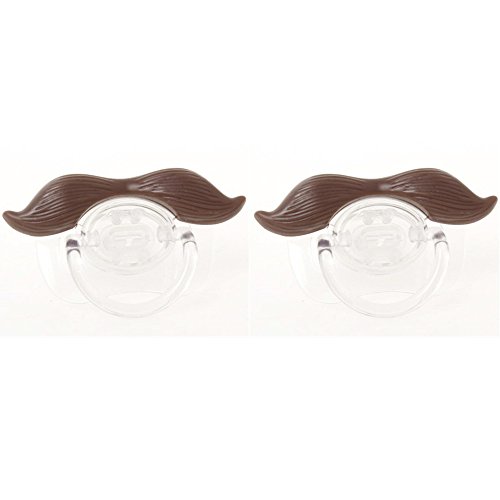 RONGTONGDA 面白い ノベルティ 赤ちゃん用 ベビー用品 おしゃぶり ニップル 口ひげ付 ハンドルバー 可愛い 幼児 (ブラウン(2点セット))