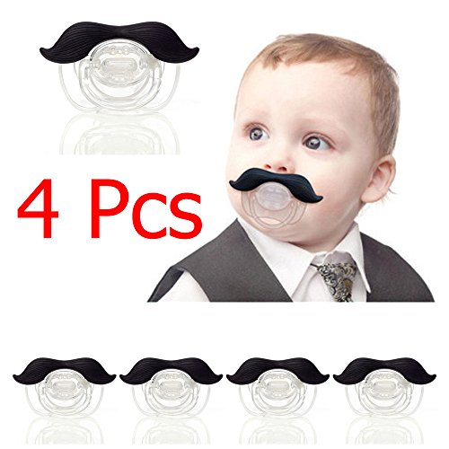 RONGTONGDA 面白い ノベルティ 赤ちゃん用 ベビー用品 おしゃぶり ニップル 口ひげ付 ハンドルバー 可愛い 幼児 (ブラック(4点セット))