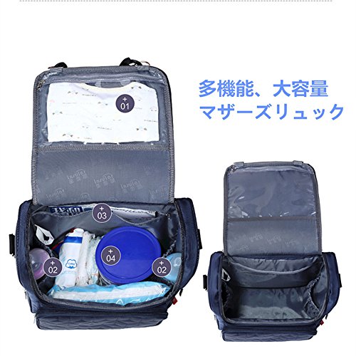 RONGTONGDA レディース 防水 マザーバッグ リュックサック リュック バックパック デイバック 肩掛け ママ 機能的 大容量 大きめ (ネイビー)