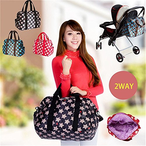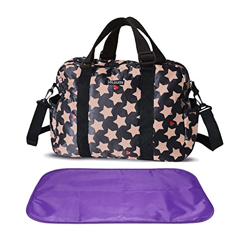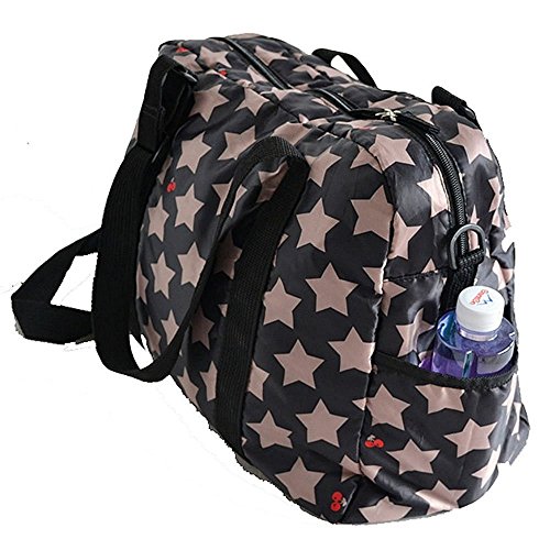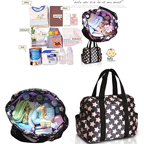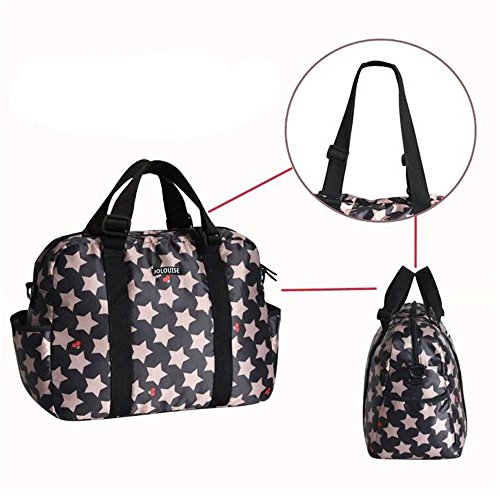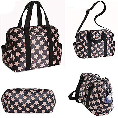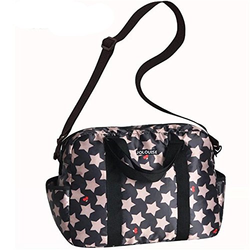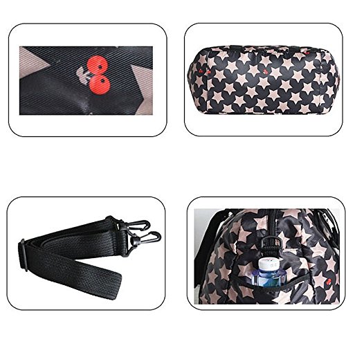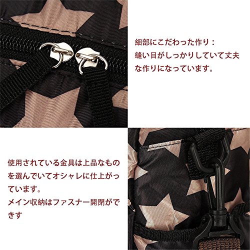 RONGTONGDA 星柄 マザーズバッグ 斜めがけ 2way ママバッグ 多機能 大容量 ショルダーバッグ 軽量 ベビーカーバッグ ストラップ付き レディース (ブラック)