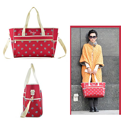 RONGTONGDAマザーズバッグ 水洗いOK 大容量 多機能 おむつ換えシート セット ママバッグ ショルダーバッグ (レッド)